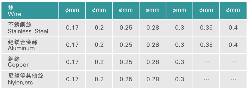 01:Wire material:Stainless steel /Alloy/Copper/PVC